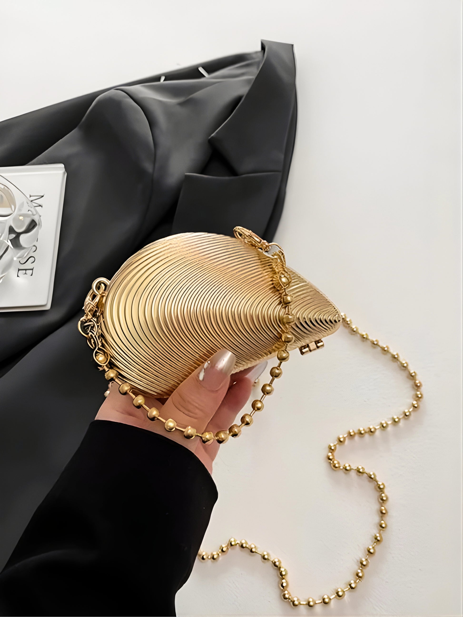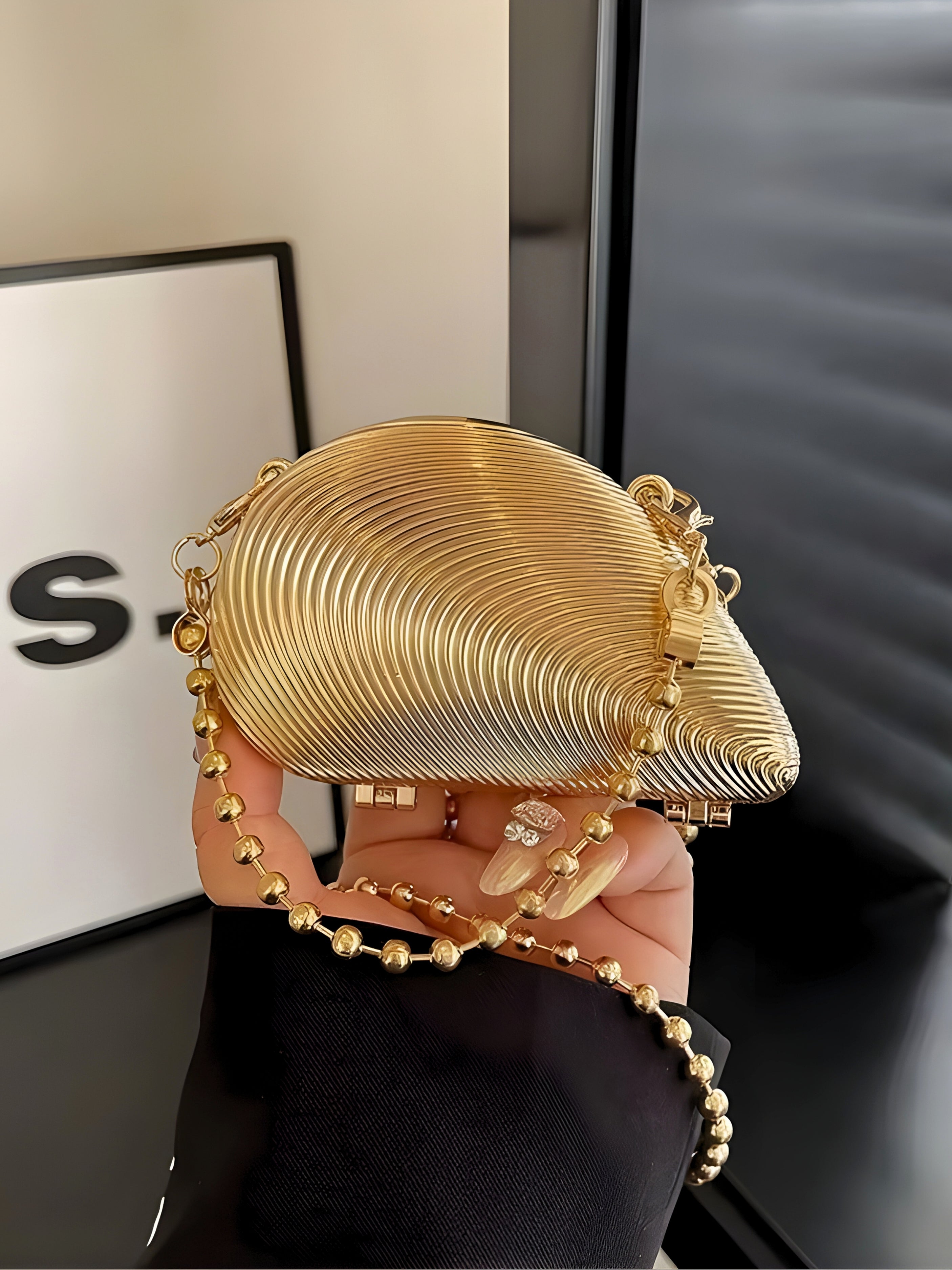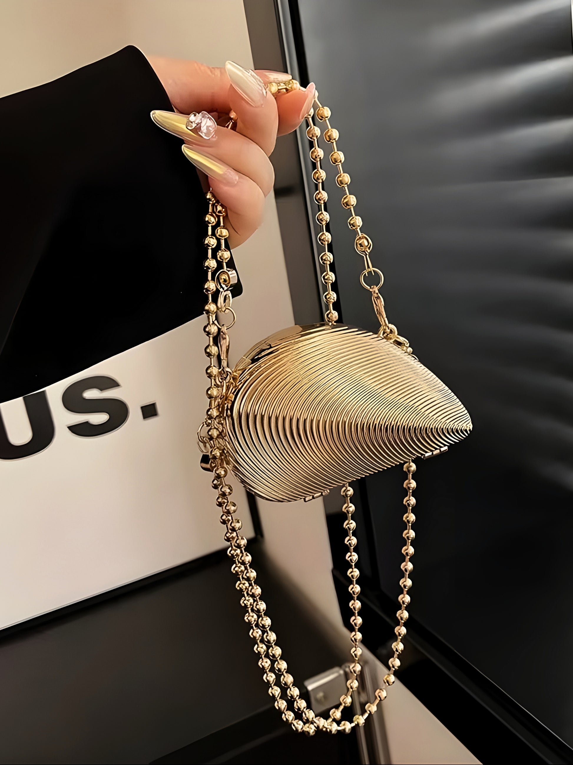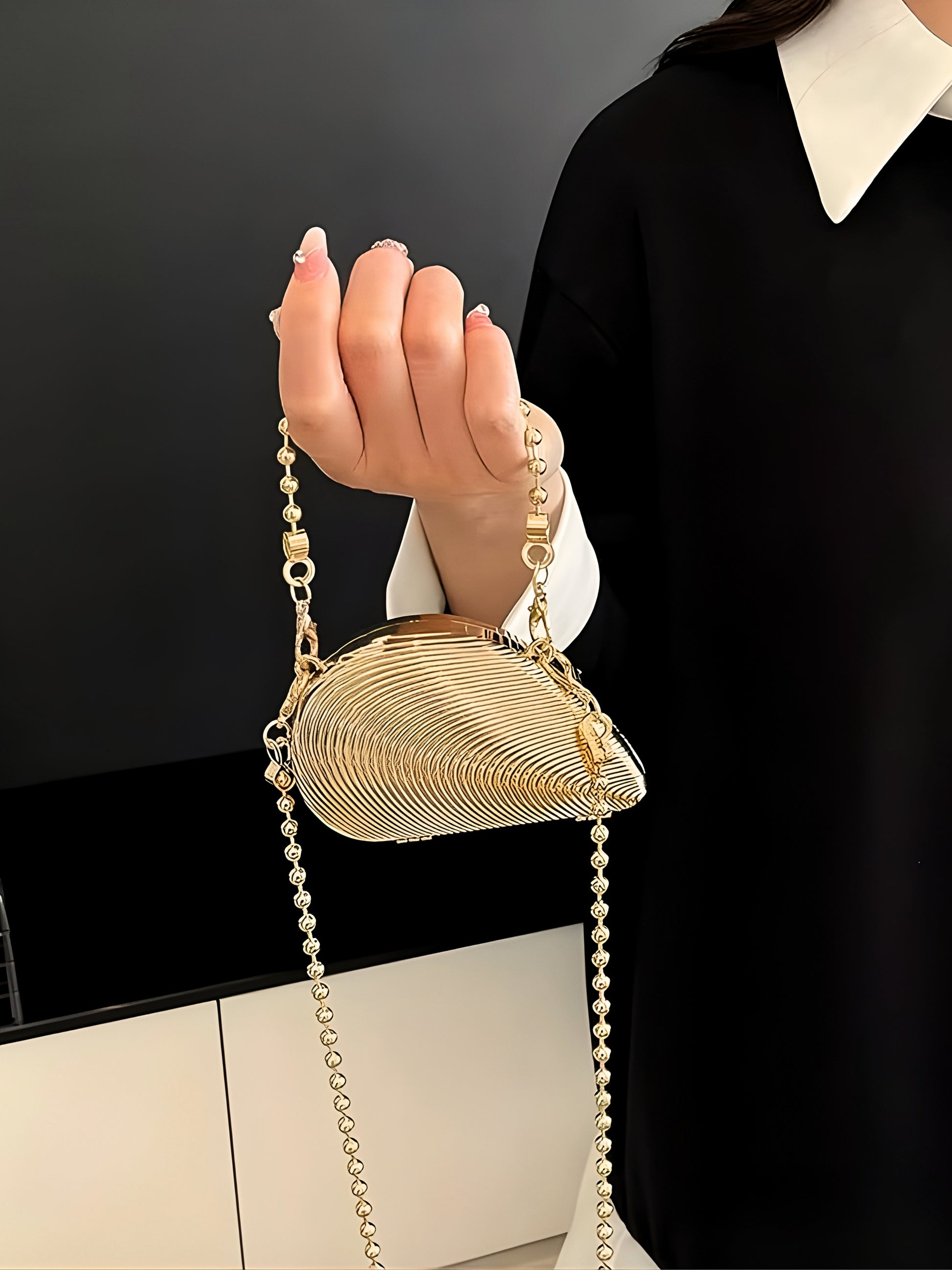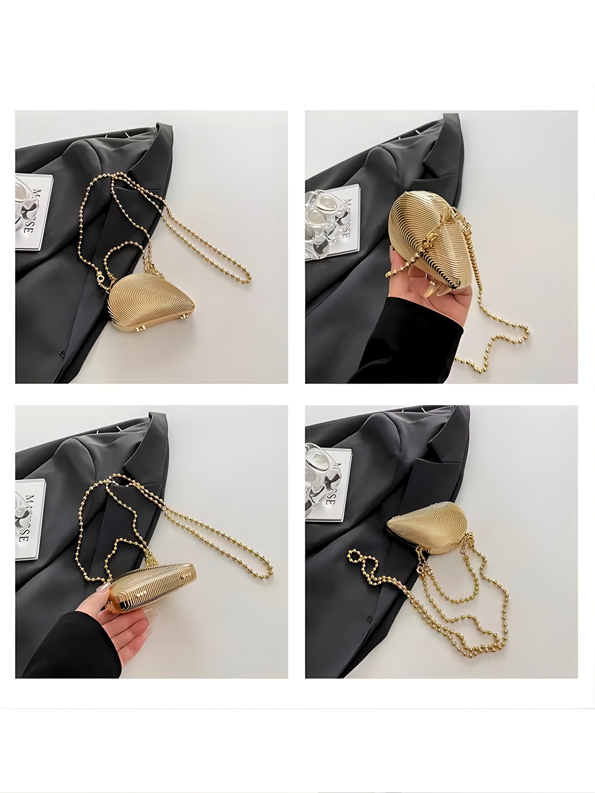 Crafted with a gleaming metallic finish and sleek silhouette, it slips effortlessly from hand to handbag, perfect for evenings that call for a little sparkle and a lot of style.